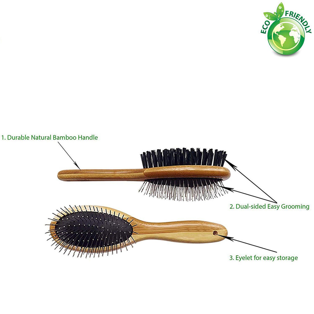 PetVogue Professional Double Sided Pin and Bristle Bamboo Brush Pet Grooming Comb