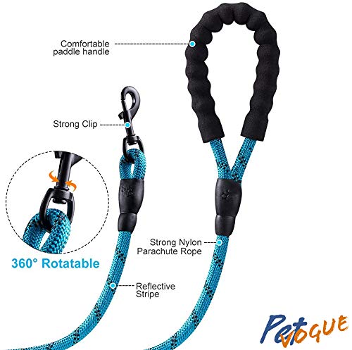PetVogue 4FT Strong Dog Rope Leash with Comfortable Padded Handle and Highly Reflective Threads for Medium and Large Dogs