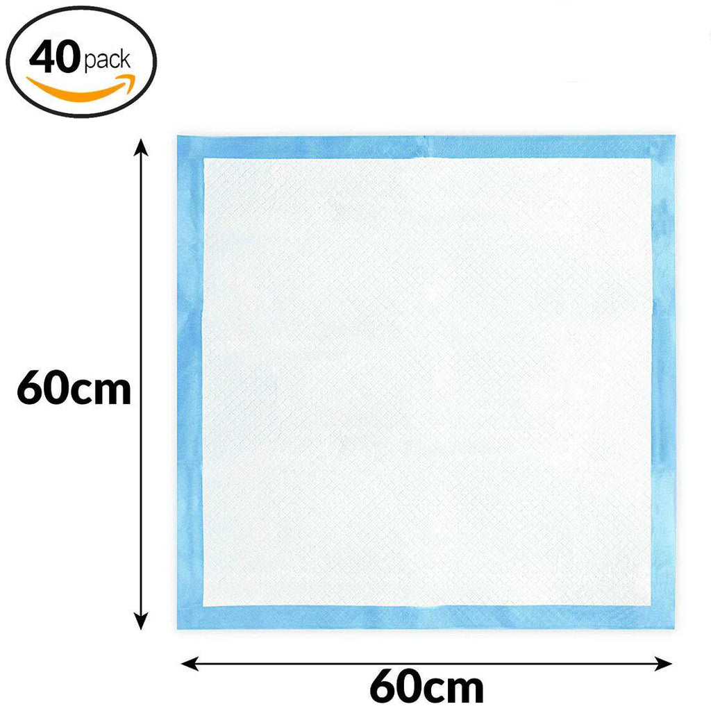 • PRODUCT SIZE: Each unscented dog pee pads set of 40 measures: 24"W x 24"L(60 x 50 cm), great for puppies, dogs, elderly canines, kittens, cats and other pets, also for your indoor or outdoor use