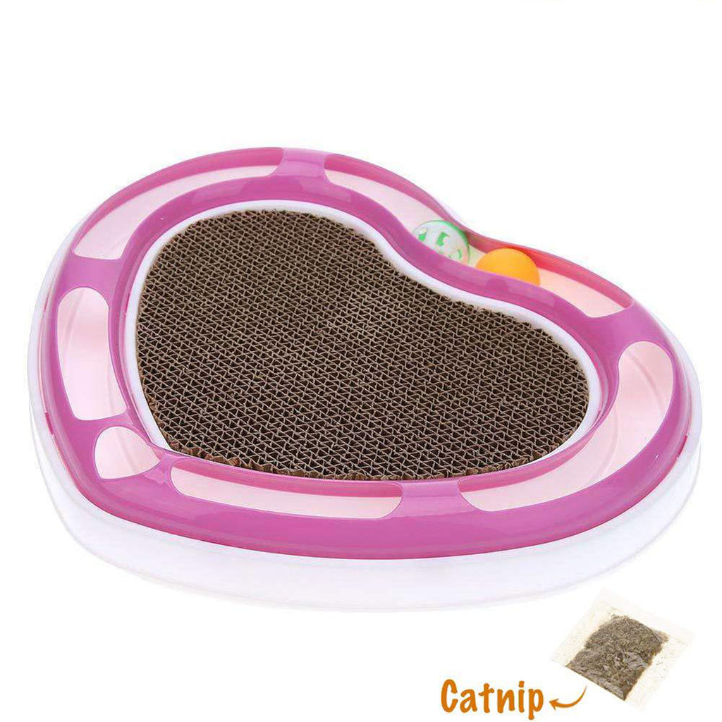 PetVogue Cat Stratcher with Free Catnip Heart Shape Cat Scratcher Pad Recyclable Corrugated Cardboard with Bell Ball Tunnel Toy (Color May Vary)